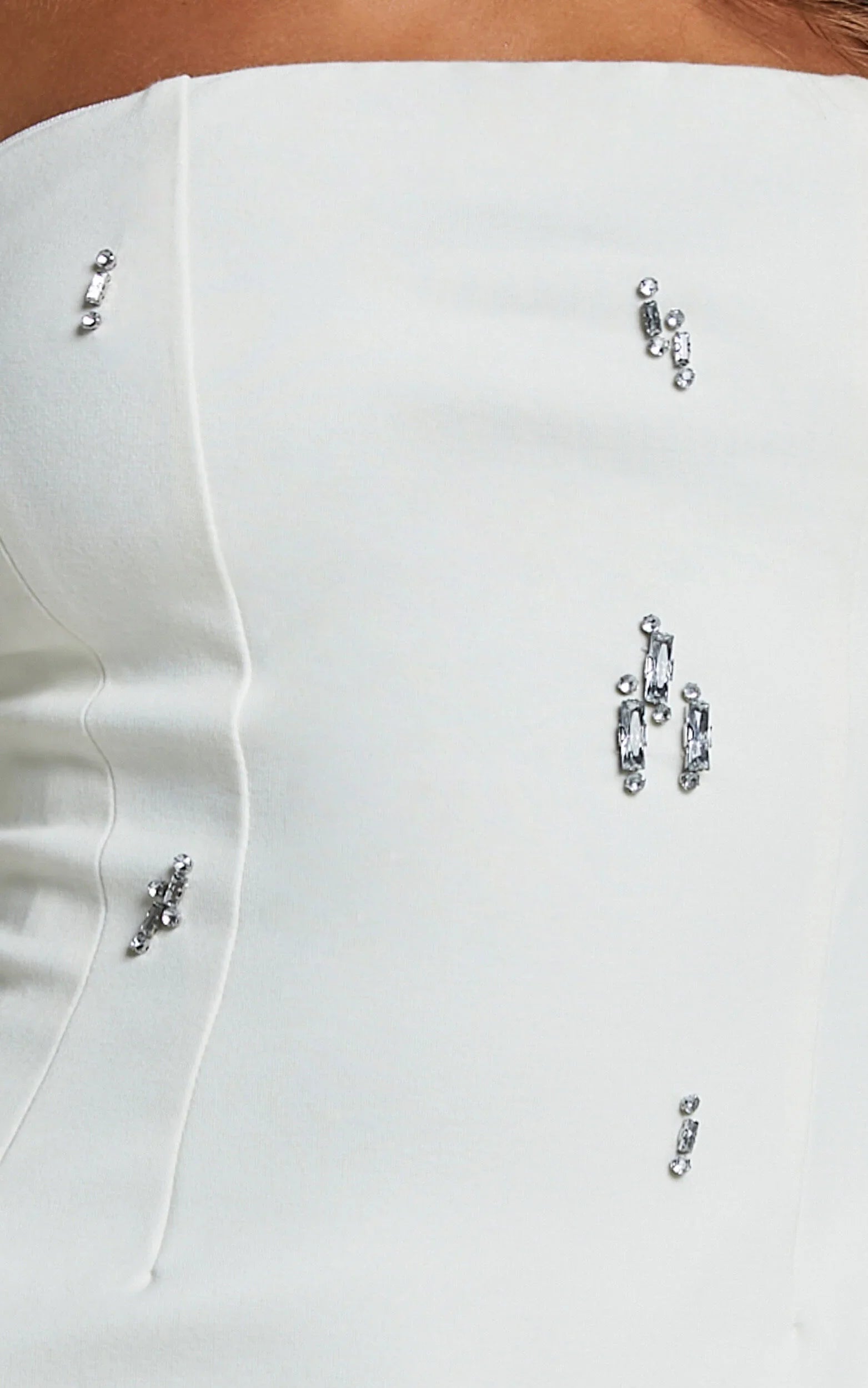 Get ready to turn heads with the Anziel Mini Dress. This strapless beauty is perfect for your next party night, featuring a structured cluster embellishment that adds just the right amount of sparkle. Made from a combination of viscose and nylon, this mini dress hugs your curves in all the right places while keeping you comfortable throughout the night. With its flirty silhouette and timeless white color, this dress is an absolute must-have for any fashion-forward babe. So go ahead and show off your style with the Anziel Mini Dress - it's time to shine!Product Details:Strapless mini dressMade from viscose fabricFeatures zips for added stylePerfect for party nightsShift dress styleMaterial and Care70% Viscose, 25% Nylon, 5% SpandexLow / No stretch