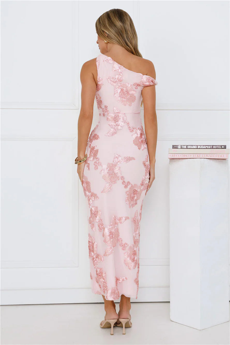 Introducing a classy, chic dress. The Billions Off Shoulder Mesh Maxi Dress features twisted shoulder straps, a straight silhouette and a split to the skirt. Style with heels and curls for a fancy party.