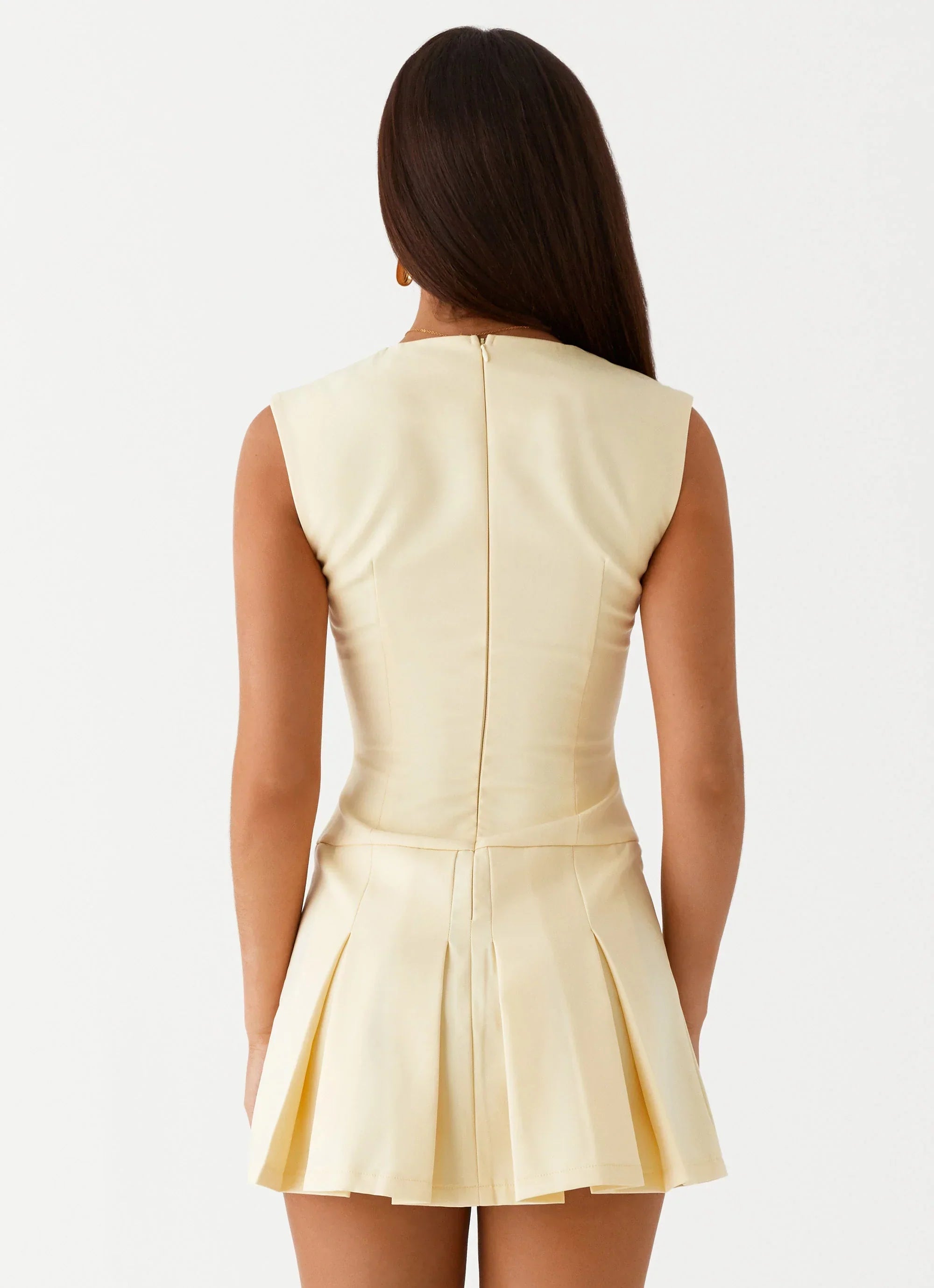 Introducing the Cassia Mini Dress – a chic and versatile choice for any occasion. This unlined mini dress boasts a deep V neckline and a playful pleated skirt, creating a flattering silhouette that's perfect for evening events or daytime outings.