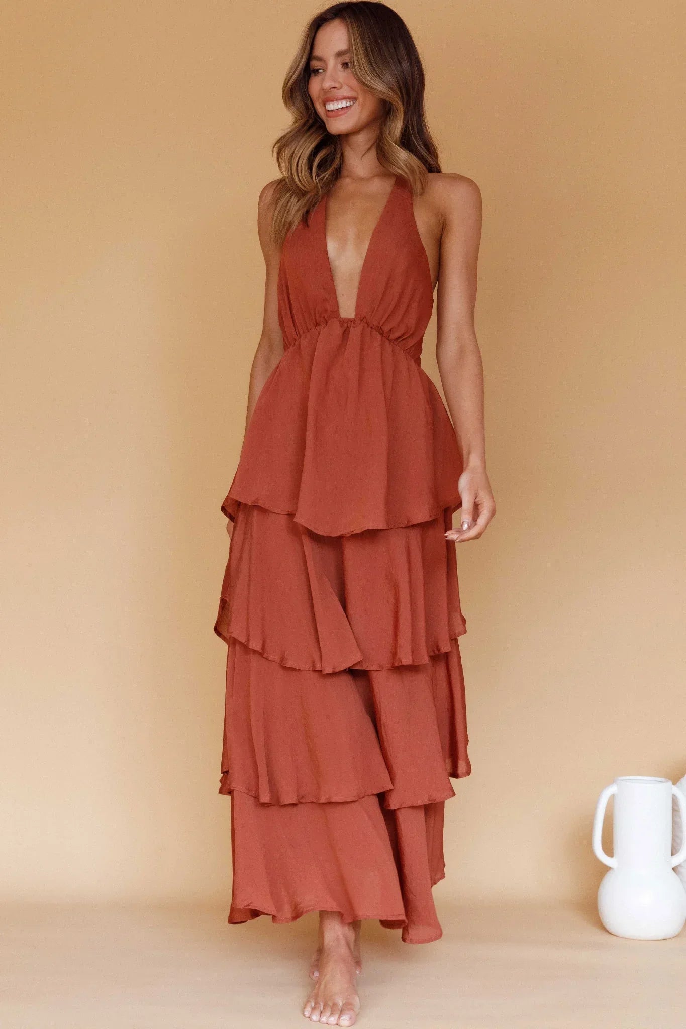 Heads will turn when you float by in our gorgeous Catalina maxi dress. We are osessed with its tiered ruffle detail. Perfect for a garden wedding or birthday soiree. Team it with strappy heels and a clutch for an unforgettable look.
