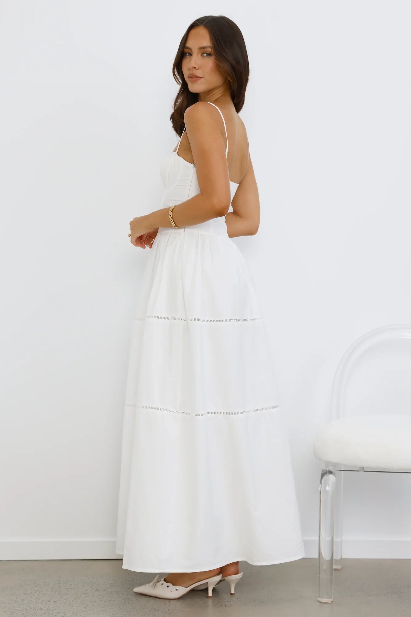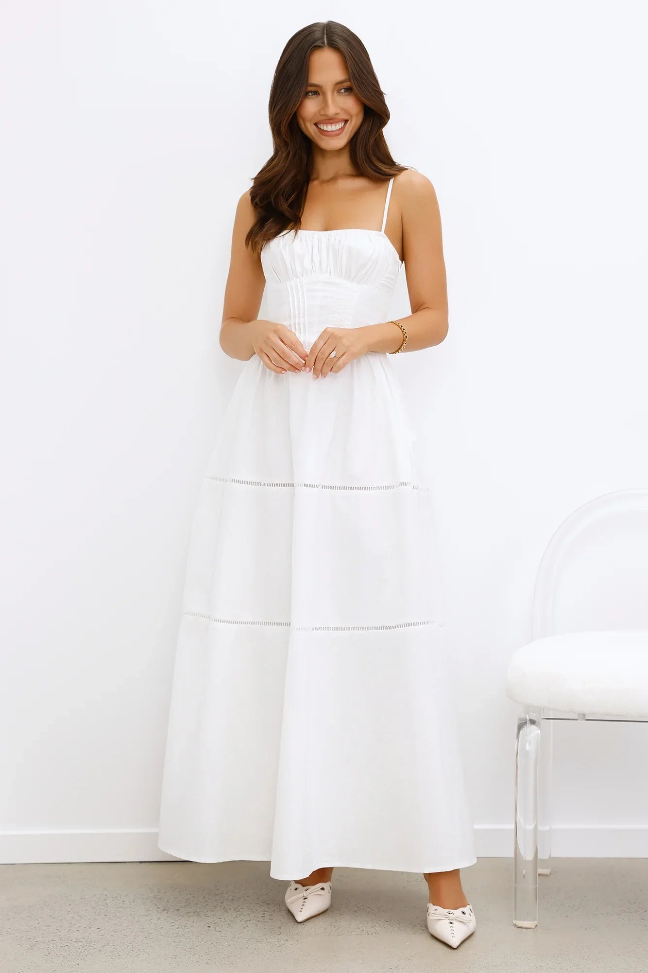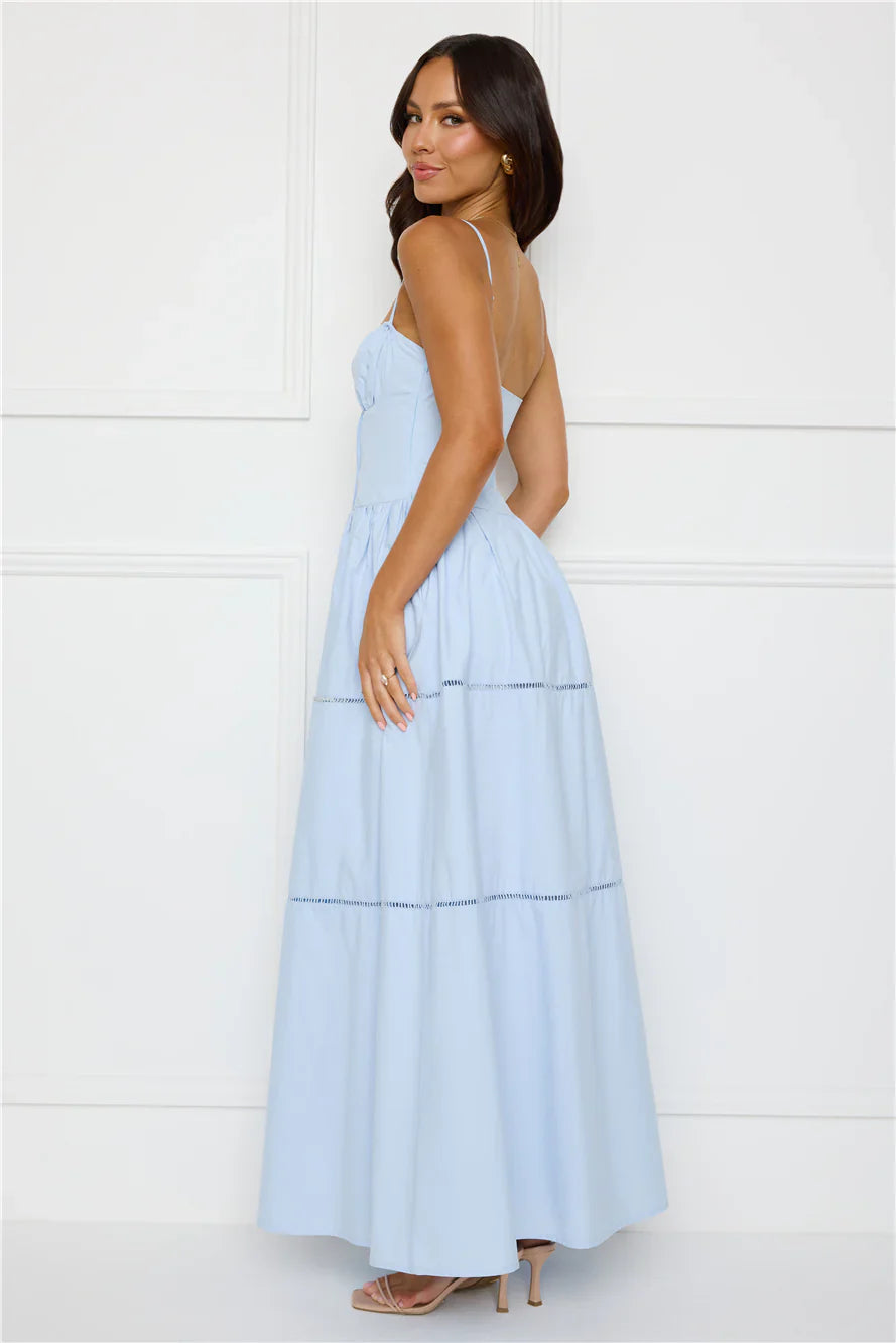 Isn't she dreamy? The Chic At Sunset Maxi Dress features an elastic neckline and a flowy skirt with ladder trim. Style this dress with sandals and beachy waves for a 'fit we love.