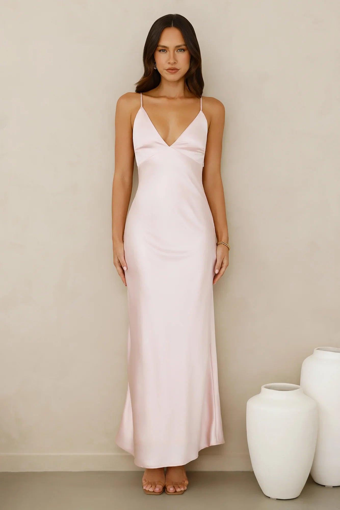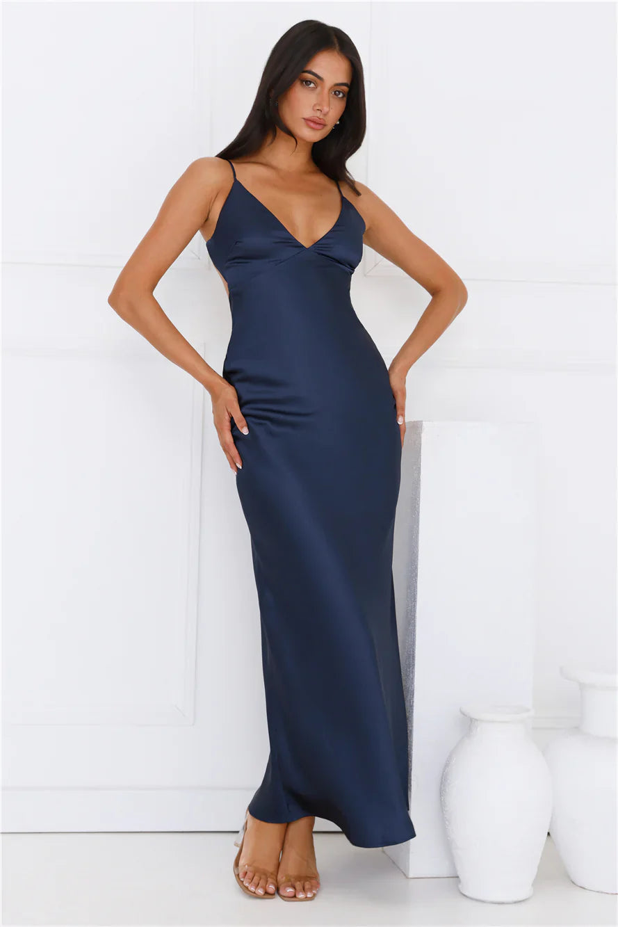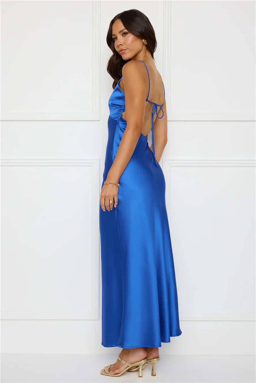 Lovely, this style is classy and sophisticated. The Chic 'Fit Slip Satin Maxi Dress features a gorgeous silky silhouette and an open back with a tie detail. Style with heels to turn heads in the best way possible.