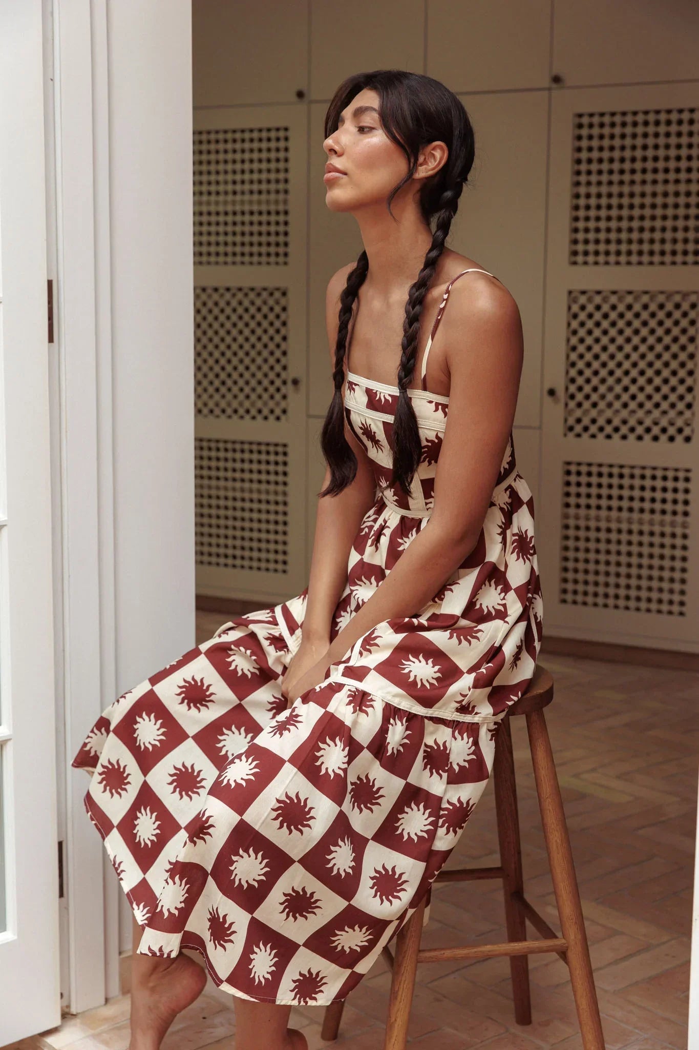 Twirl through your day in our pretty Confidante midi dress. It features pretty piping trim and a flattering square neckline. It's perfect for Sunday brunch with your besties teamed with mules and a tote for a look we are loving.