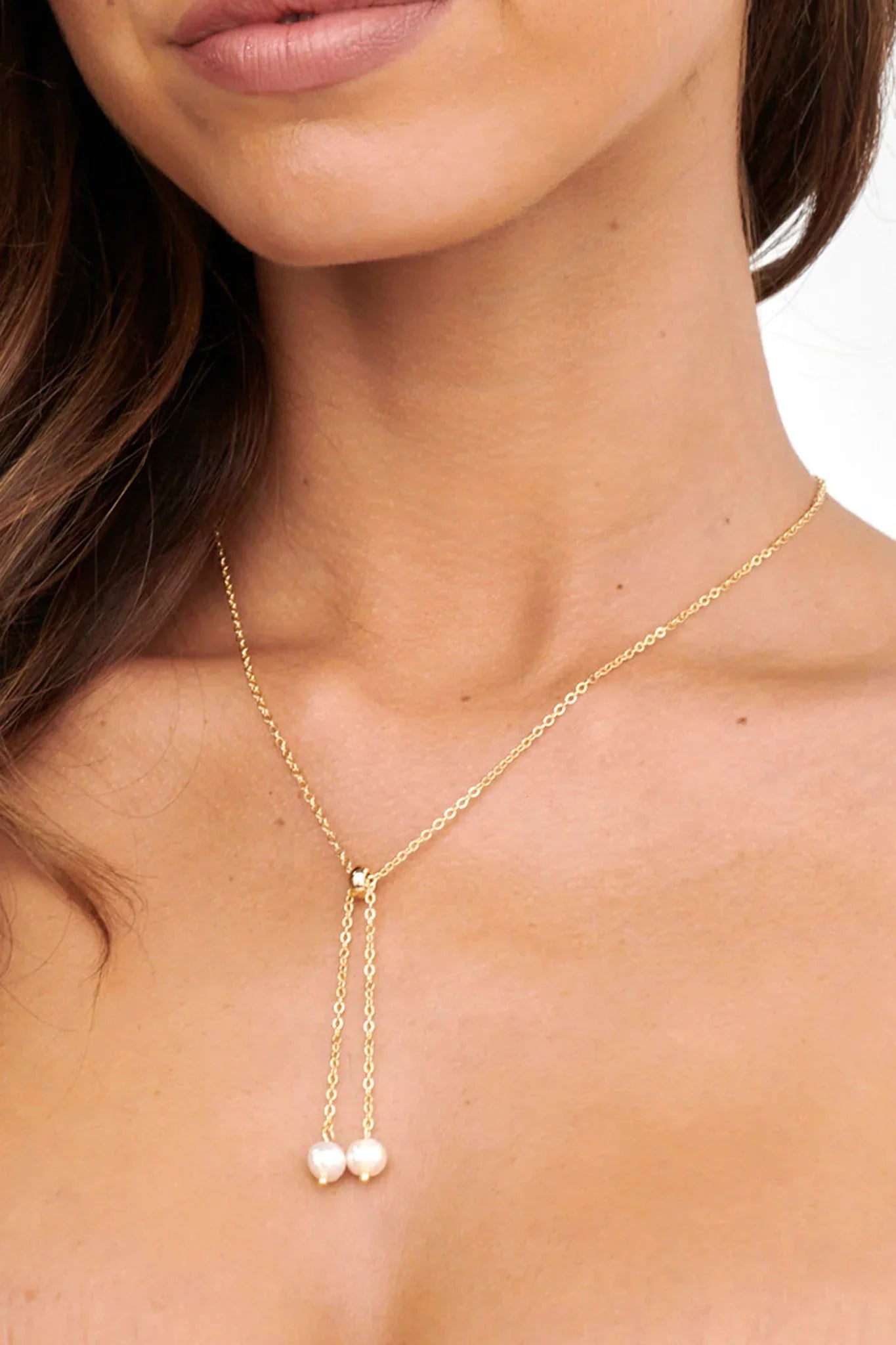 Steal the spotlight in our pretty Esme necklace. Featuring pearl drop accents, it's giving It Girl and we are obsessed! Team it with our Mad About You mini dress for an unforgettable look.