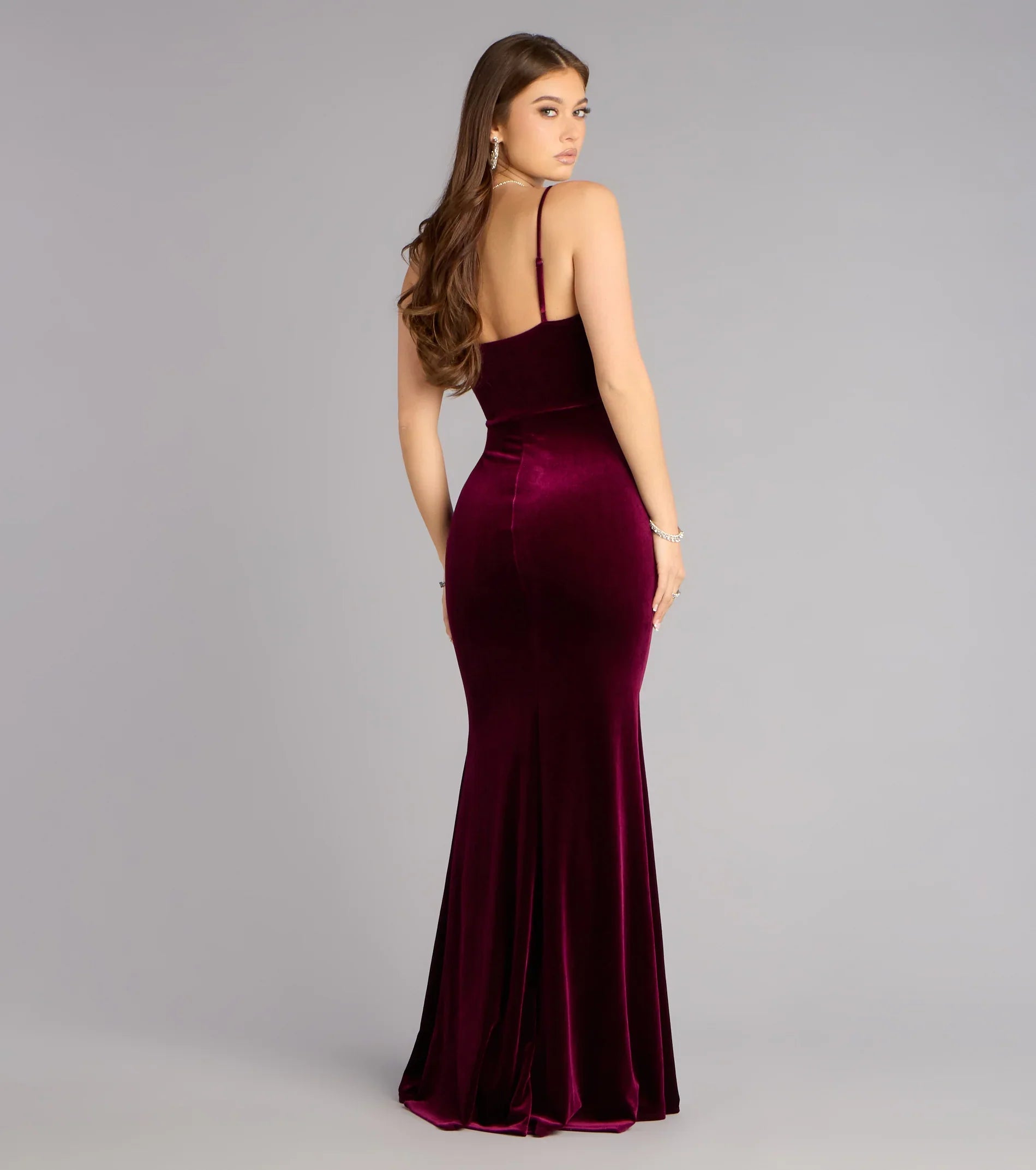 Crafted for the moments that beg for something timeless and quietly stunning, this velvet gown glides with refined ease. The sweetheart neckline draws the eye with soft, sculpted romance, while the pleated mermaid floor-length hem creates a beautifully fluid, statuesque finish.