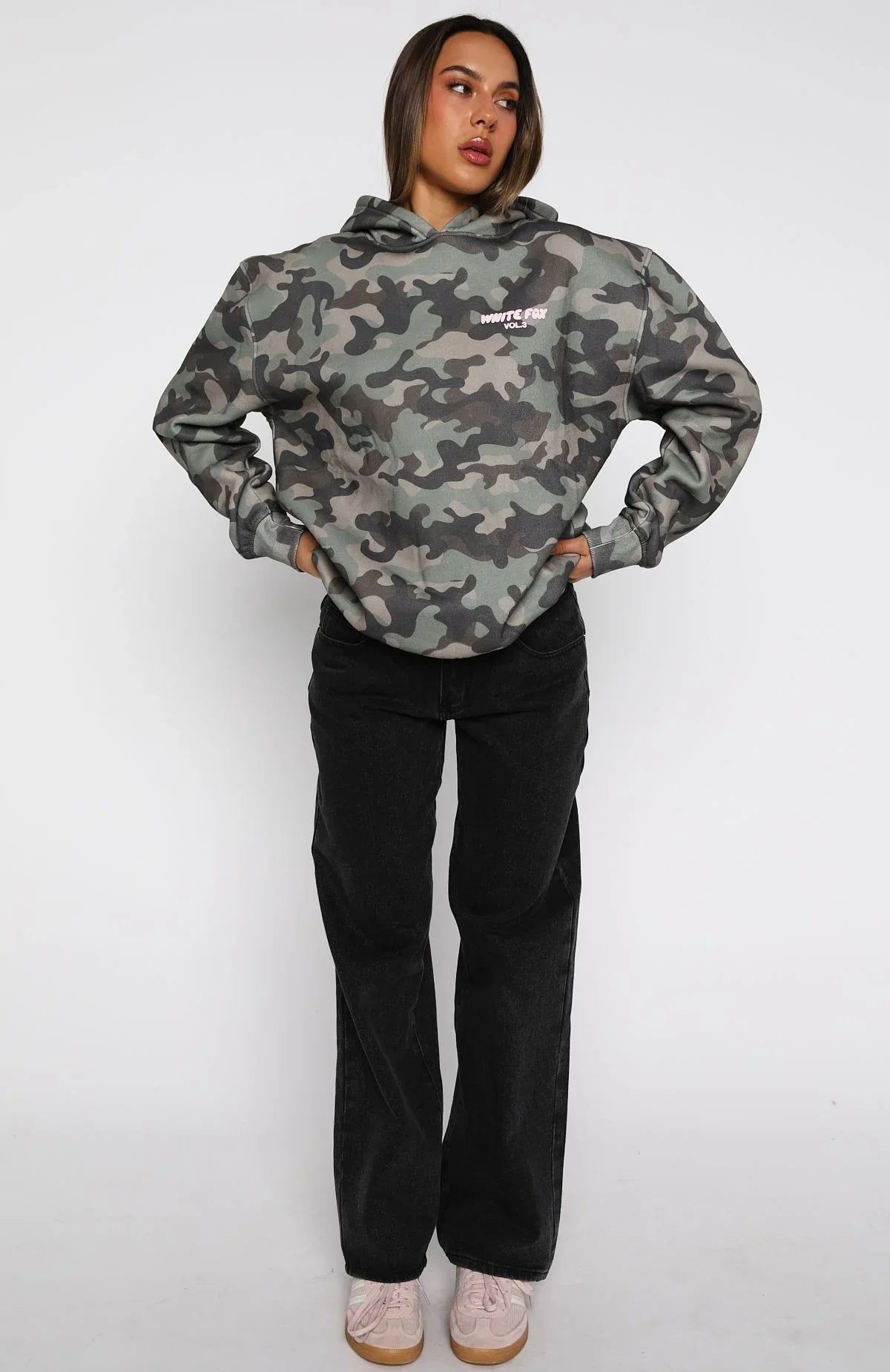 Designed for your downtime! The Offstage Printed Oversized Hoodie in Washed Camo brings easy comfort with an oversized fit, long sleeves, a roomy front pocket, ribbed cuffs and hem, and a hood. Bold puff‑print White Fox text lands on the side front and centre back for a signature touch. Style it with the matching Offstage Printed Oversized Tee in Washed Camo and your favourite denim for an effortless, cool combo.