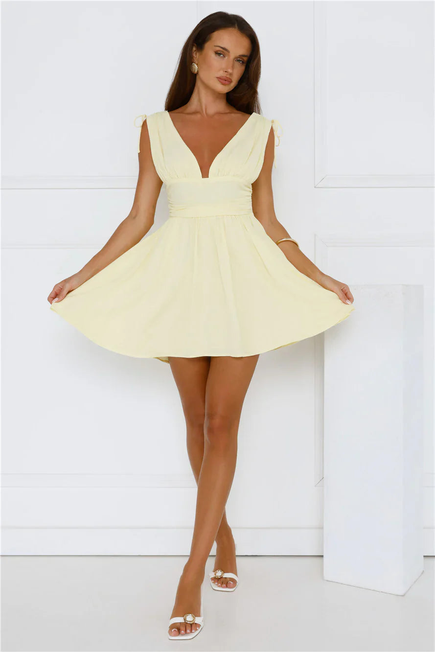 If light and breezy is your vibe for the summer then the Pineapple Island Mini Dress is for you. Featuring a V-neck and back, a fitted bodice and a flowy skirt. Style with sandals and curls.