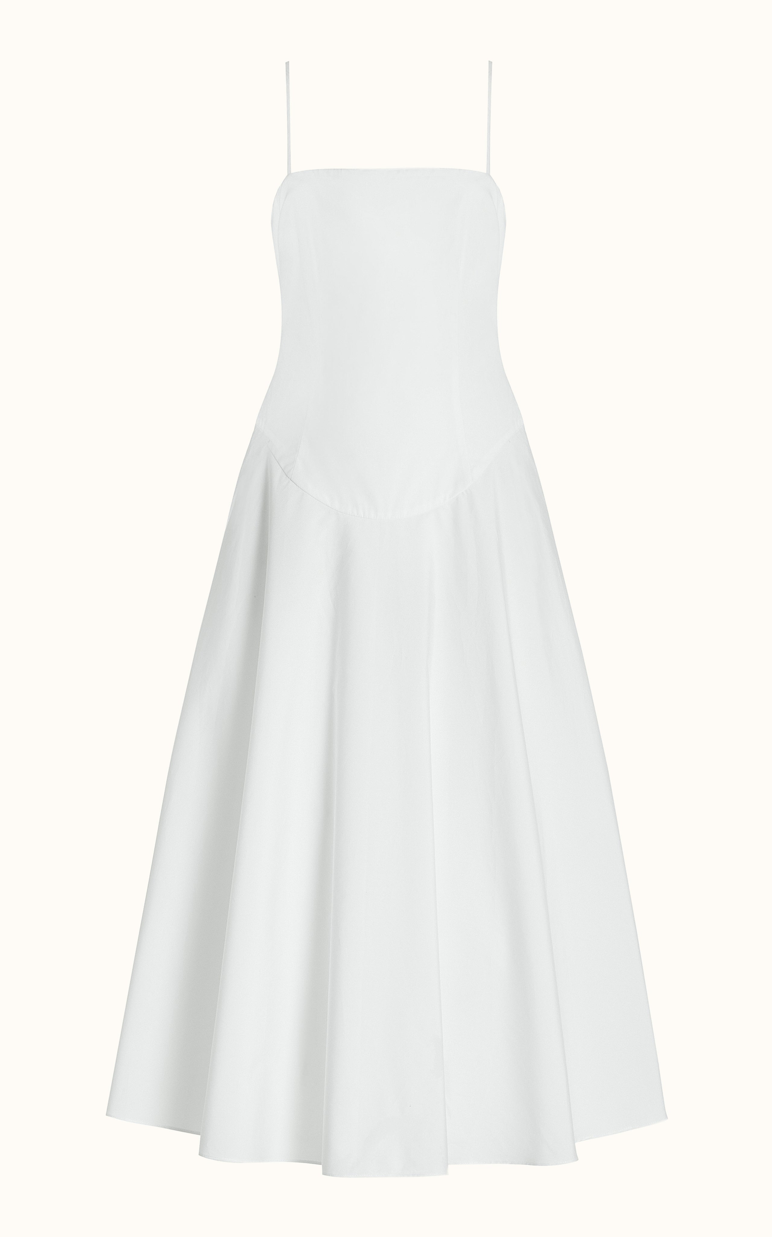 The Lady Cotton Dress is made from a soft, breathable cotton, designed and crafted in NYC. This tea length dress features delicate spaghetti straps and a flowy silhouette with gathered rouching at the center back. The perfect alternative to the classic Silk Princess Slip Dress, the Cotton Princess Slip Dress is a great option for those who prefer a more casual and comfortable feel.