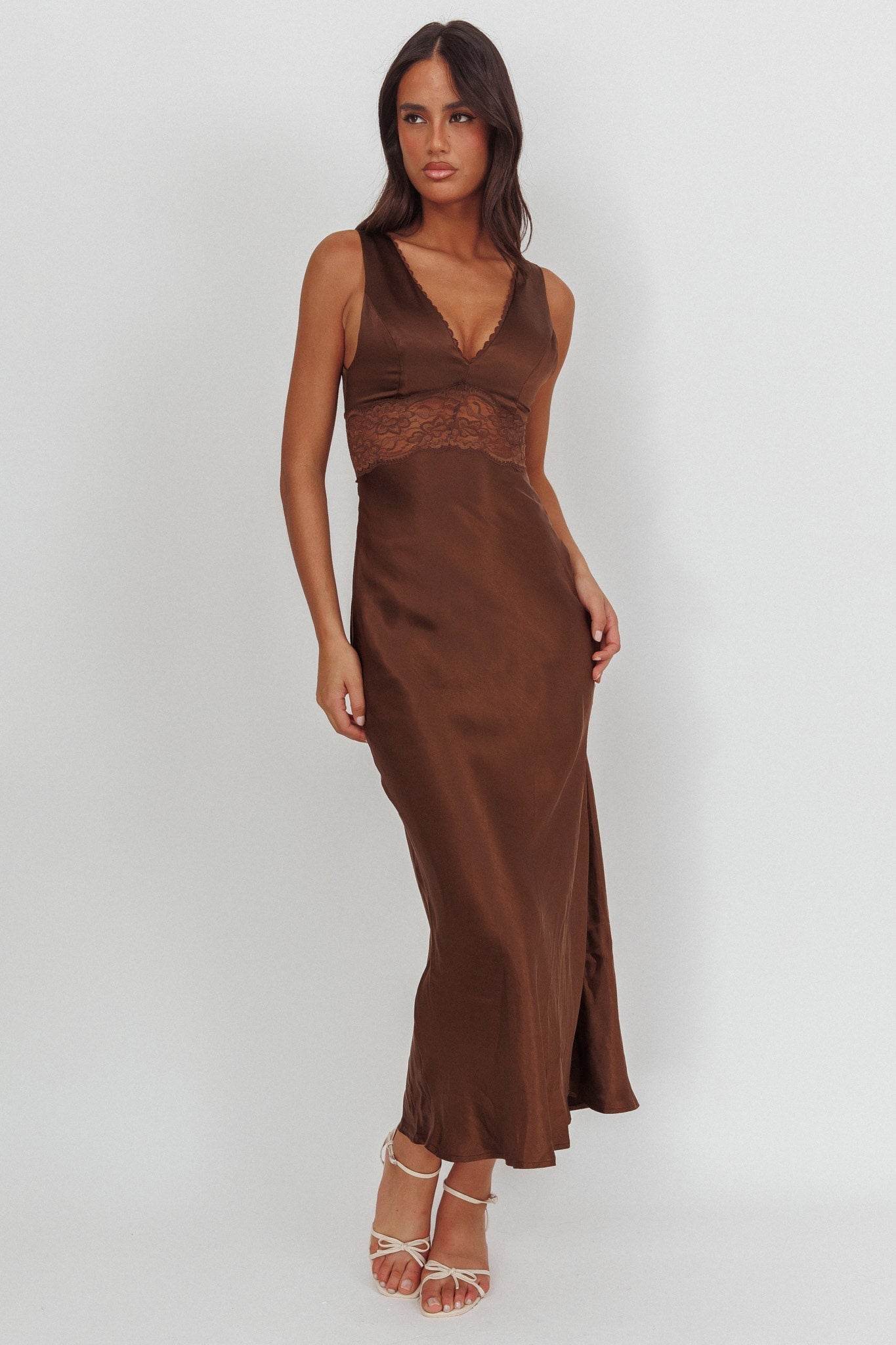 Steal the show with our pretty So Sweet maxi dress. Featuring a lace trim and flattering V-neckline, it's perfect for a birthday celebration! Team it with strappy heels and a purse for a look that's fit for a princess.