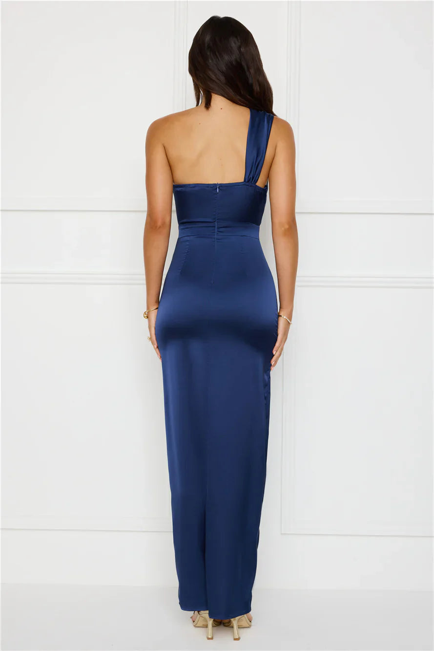 Turn up the allure in the Strong Desire Satin One Shoulder Maxi Dress, featuring a luxe satin finish, a sultry bodice cutout, a sleek one-shoulder design, and a straight flowy skirt with a flirty split for the perfect touch of elegance! Style with heels.