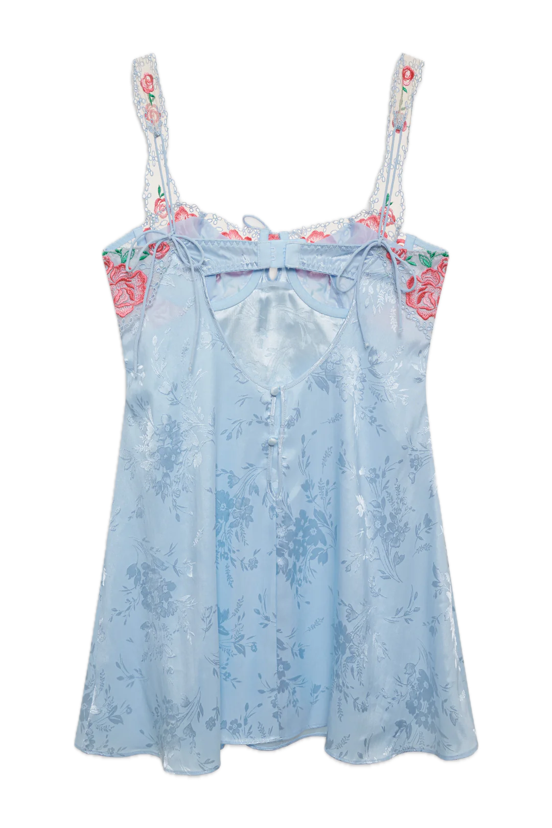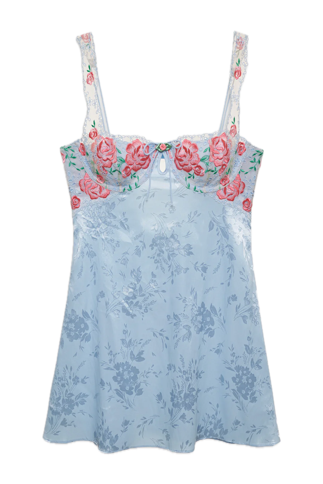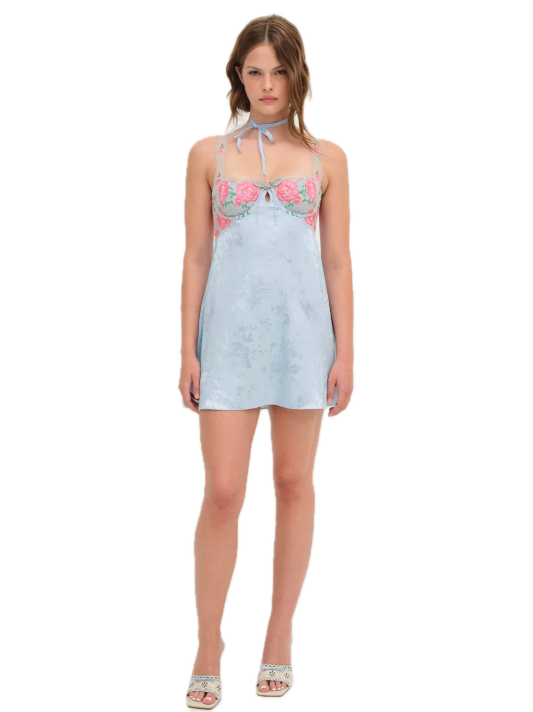 Floral silk mini dress with floral embroidered bust